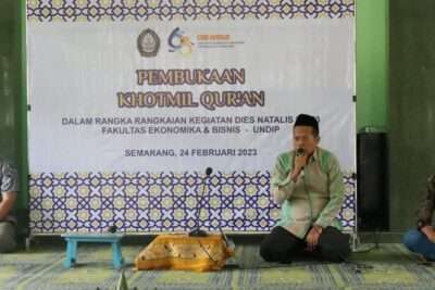 Dalam rangka memperingati Dies Natalis Fakultas Ekonomika dan Bisnis Universitas Diponegoro (FEB UNDIP) ke-63, telah dilaksanakan acara “Pembukaan Khotmil Qur’an” pada Jumat, 24 Februari 2023 di Masjid At-Taqwa FEB UNDIP. Acara ini merupakan satu dari serangkaian agenda peringatan Dies Natalis FEB UNDIP. Adapun rangkaian acaranya yaitu Pembacaan Al Qur’an oleh perwakilan dari Ormawa Mizan FEB UNDIP, kemudian dilanjutkan dengan sambutan dari Dekan FEB UNDIP (Prof. Dr. Suharnomo, S.E., M.Si.).
