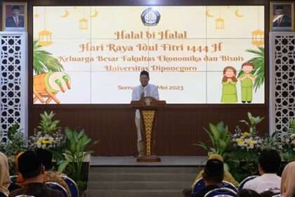 Fakultas Ekonomika dan Bisnis Universitas Diponegoro (FEB Undip) menyelenggarakan acara Halal bi Halal yang diikuti oleh segenap Dosen, Tenaga Kependidikan, para Purna Tugas, anggota Dharma Wanita, alumni, serta mahasiswa. Acara dilaksanakan secara daring di Hall Gedung KWU FEB Undip pada Sabtu, 6 Mei 2023.