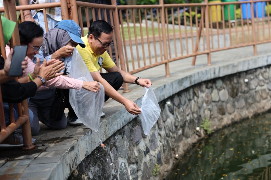 Alumni Tebar Benih Ikan di Embung FEB Undip, Dukung Pelestarian Ekosistem Perairan