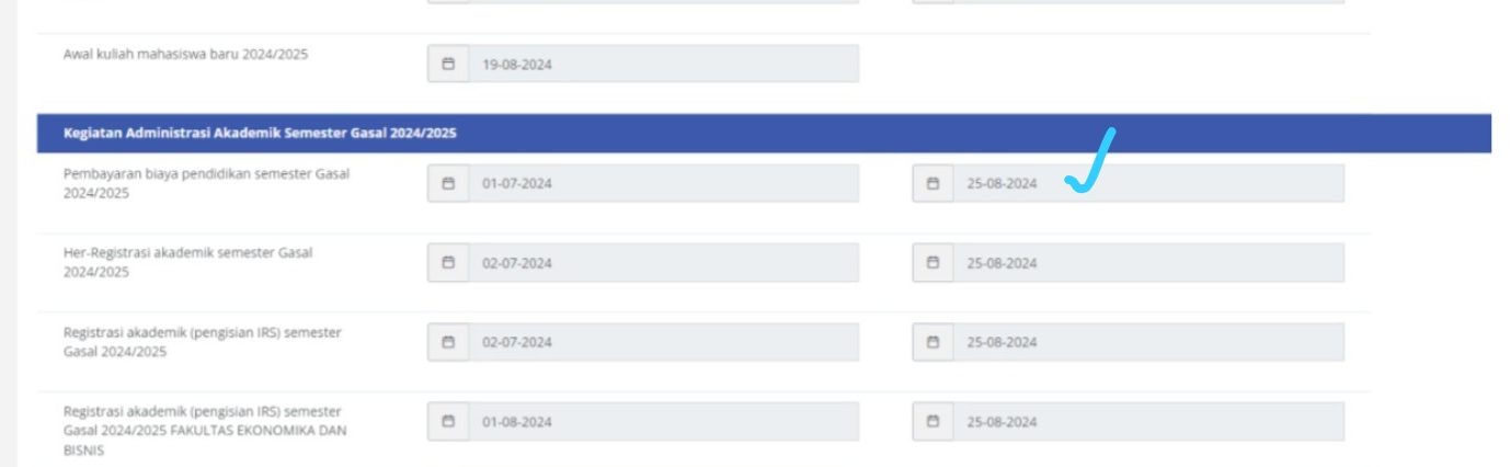 Berdasarkan jadwal terbaru dalam kalender akademik, batas akhir pembayaran UKT kini diperpanjang hingga 25 Agustus 2024.