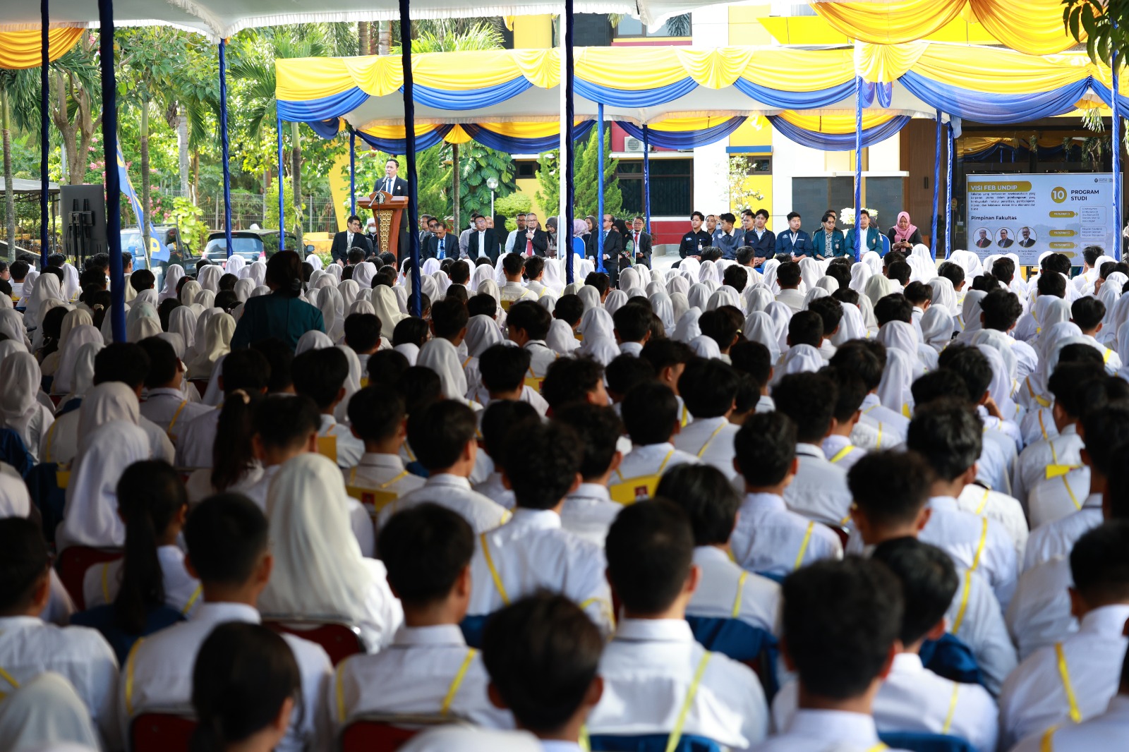 Dalam sambutannya, Dekan FEB Undip Prof. Faisal menegaskan rasa bangganya atas bergabungnya mahasiswa baru sebagai bagian dari keluarga besar FEB Undip. “Selamat datang bagi mahasiswa baru di salah satu kampus paling keren di universitas ini,” ujarnya. Ungkapan tersebut mencerminkan semangat dan optimisme bahwa mahasiswa baru akan tumbuh serta bertransformasi di lingkungan akademik yang unggul.